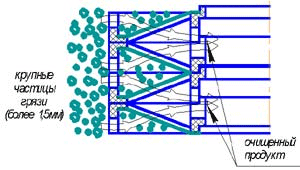 Первая ступень очистки защищает фильтрующую сетку от крупных частиц, способ-ных повредить ее. Вторая ступень очищает жидкость от более мелких загрязнений.