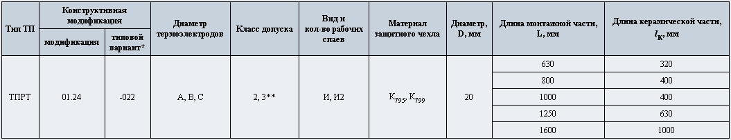 ТПРТ 01.24-022 - (А, В, С)Х - И(2) - К ххх - D - L / l К