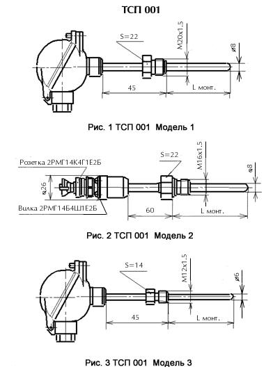 · По отдельному заказу КТСПР 001 может поставляться в комплекте с термометрическими гильзами (см. рис. 5).